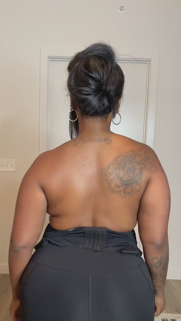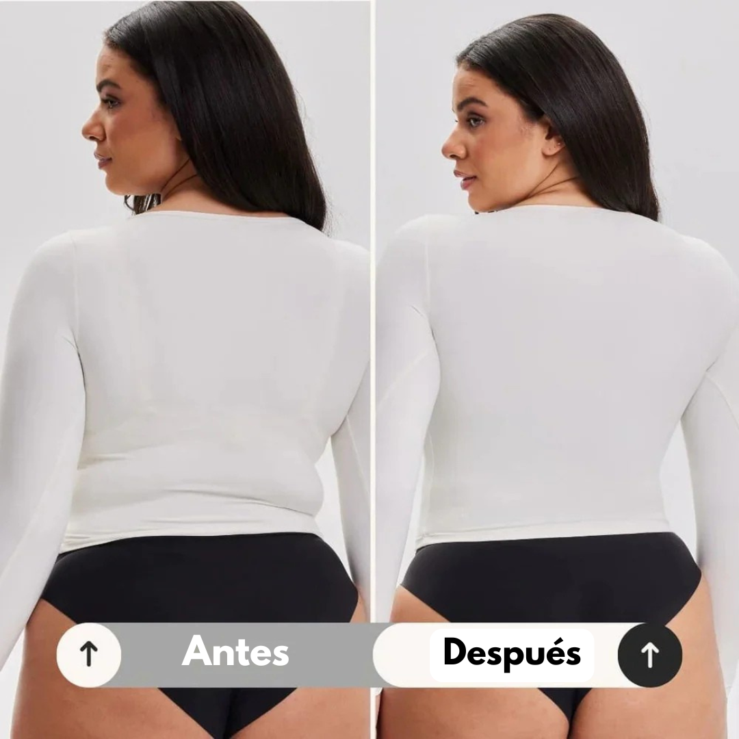 Su diseño lisa la espalda y los costados, creando una silueta suave y natural.
