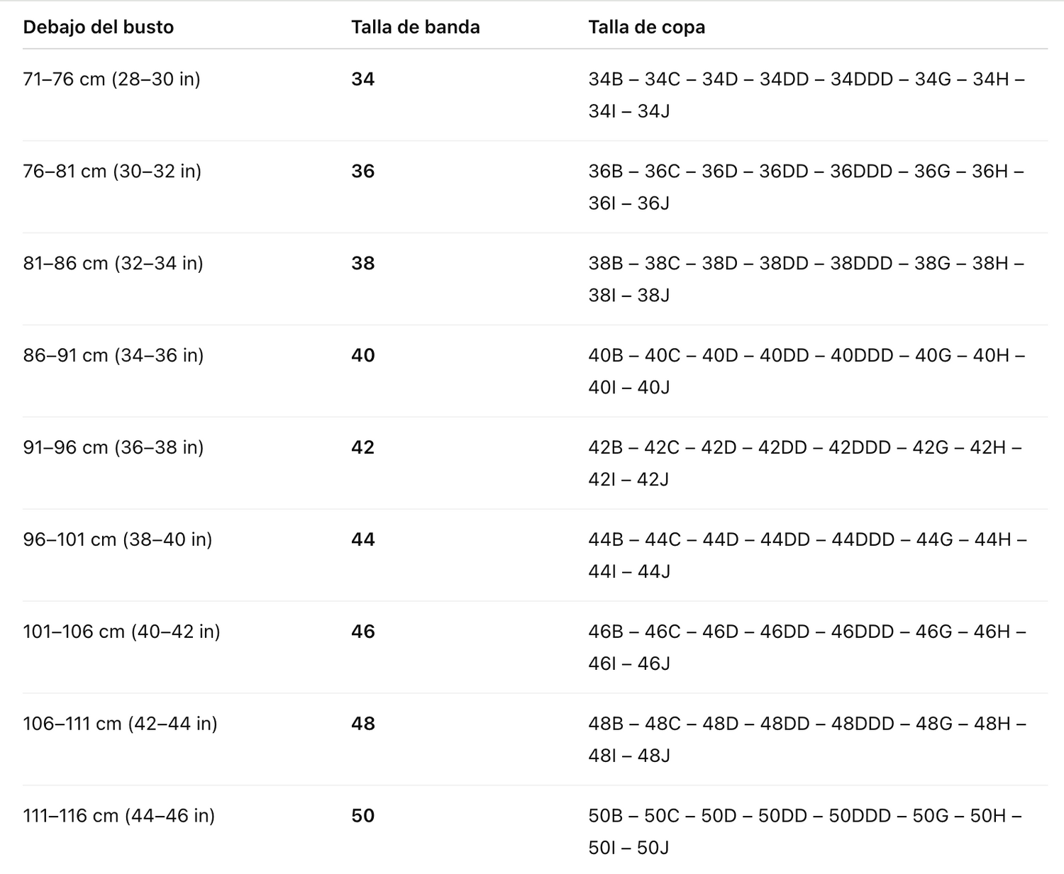 Guía de tallas