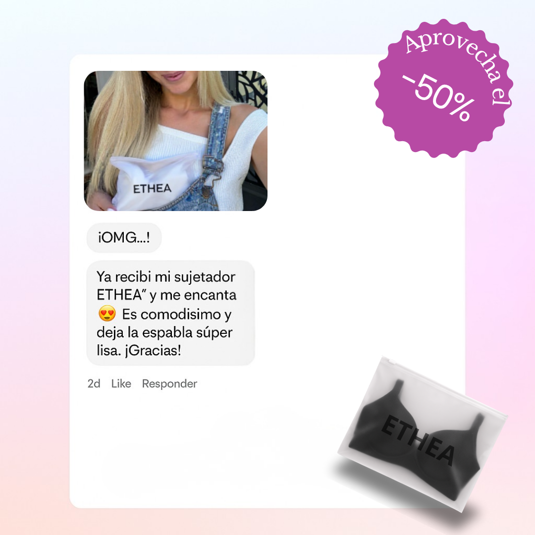 Aprovecha nuestra oferta especial: 50 % de descuento en tu segundo sujetador Ethea ™, para una comodidad que lo cambia todo.